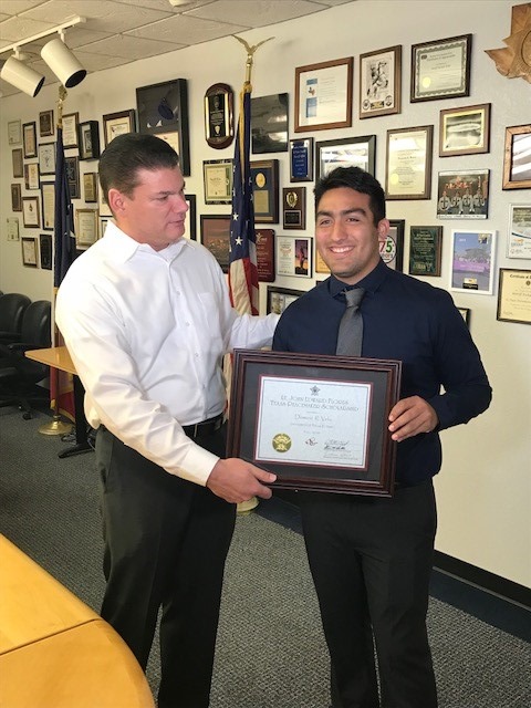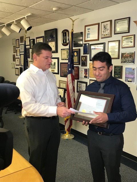 El Paso, TX – On Tuesday, November 20, 2018, El Paso County Sheriff Richard D. Wiles presented the Lt. John Edward Flores – Texas Peacemaker Scholarship to Dominic Veliz, who is currently majoring in Kinesiology at the University of Texas at El Paso.