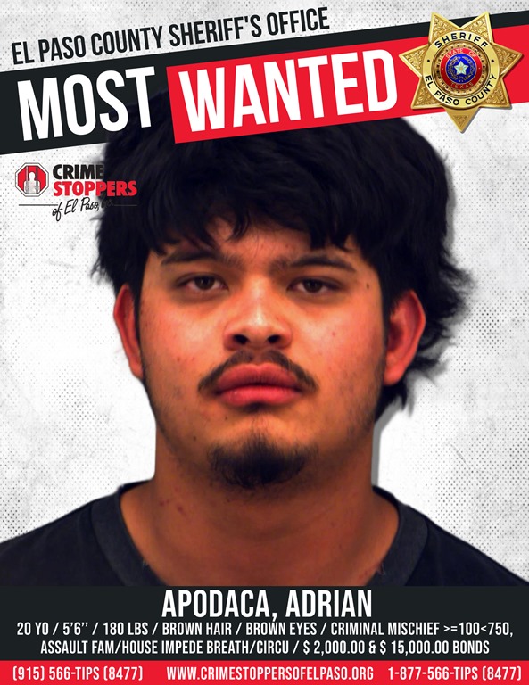 EL PASO, TEXAS – Crime Stoppers of El Paso, Inc., distributes fugitives wanted by the El Paso Police Department and the El Paso County Sheriff’s Office every week through the Most Wanted feature. The attached fugitives are individuals, where attempts in locating them for one reason or another have been unsuccessful. The agencies submit these fugitives to Crime Stoppers of El Paso, Inc., which distributes them to the news media and offers the use of the Crime Stoppers hotline for information regarding the whereabouts of these fugitives. Anyone with information on the location of any of these fugitives should call Crime Stoppers of El Paso immediately at (915) 566-8477 (TIPS), or submit the information on-line at www.crimestoppersofelpaso.org. You will remain anonymous, and if your tip leads to an arrest, you can qualify for a cash reward. Crime Stoppers of El Paso, Inc., is a non-profit organization that brings together the community, law enforcement, and the media to solve crime.