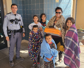 El Paso, Texas – On March 18, 2022, at approximately 12:00 pm., El Paso County Sheriff’s Office deputies from the Northwest Patrol Station were conducting their regular patrol duties, when they observed a vehicle along with the Rio Grande River levy close to the 7500 block of Willoughby in Canutillo, Texas. Deputies conducted a welfare check and discovered that a family (husband, wife, and five children) were staying in a small tent by the river because they had recently been evicted from their apartment and had no place to stay. Upon realizing the situation of this family, the deputies immediately coordinated to provide the family with food, water, and blankets. Also, deputies were able to make arrangements with the Salvation Army, who accepted the mother and children to provide them with shelter and other services. Deputies transported the children and their mother to the Salvation Army, while the husband was provided gas money by deputies so he could utilize his vehicle to visit his family. With this, deputies show their community how much they care about their well-being, and that their jobs not only require preventing and investigating crime but helping people in need.