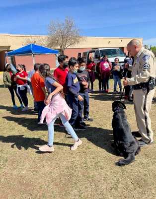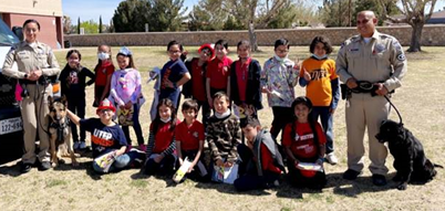 El Paso, Texas- On April 1, 2022, the El Paso County Sheriff’s Office PAWS (Pets Advancing Wellness and Success) in the Detention section attended Alicia Chacon International School for a Career Day. Students and staff learned about the P.A.W.S. program and how to become a Detention Officer or a Deputy. Officer Fernandez and Chavez along with P.A.W.S. Canines Cadet Addie and Gunner attended the event and conducted demonstrations on basic commands. Canine Cadets from the P.A.W.S. program may be adopted through the Animal Rescue League of El Paso by calling (915) 877-5002.